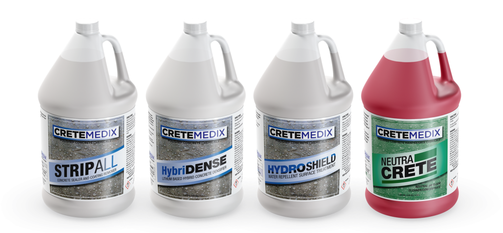 Developed by VentureTECH Chemical Corporation, CRETEMEDIX combines over 25 years of experience in concrete polishing services with more than 40 years of chemical manufacturing expertise. The result is one of the industry’s most complete and trusted lines of concrete treatment chemicals, featuring 17 specialized products for surface preparation, densification, polish protection, and maintenance